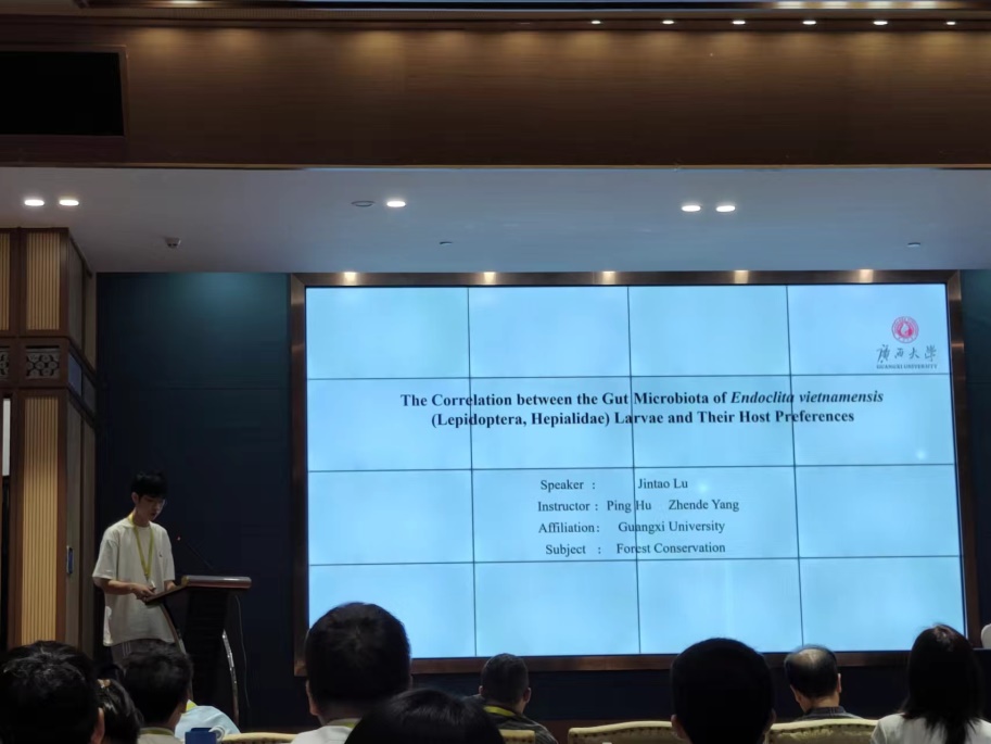 我院博士研究生鲁进韬受邀参加2024年“中国-东盟林业科学论坛”学术交流活动,以“桉蝙蛾幼虫肠道微生物与寄主取食偏好的相关性(The Correlation between the Gut Microbiota ofEndoclita signifer(Lepidoptera, Hepialidae) Larvae and Their Host Preferences)”论文为主题进行学术报告,与参会人员开展了深入交流与讨论,并在报告评比中获得“优秀报告奖”。