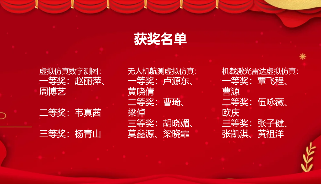 本次比赛吸引了全校60余名同学报名参赛。经过同学们激烈角逐,最终评出一等奖6名,二等奖5名,三等奖7名。据悉,第四届全国大学生测绘地理信息虚拟仿真技能竞赛决赛将在2024年11月9日在河南测绘职业学院举行,本次选拔赛一等奖获得者将代表学校参赛。