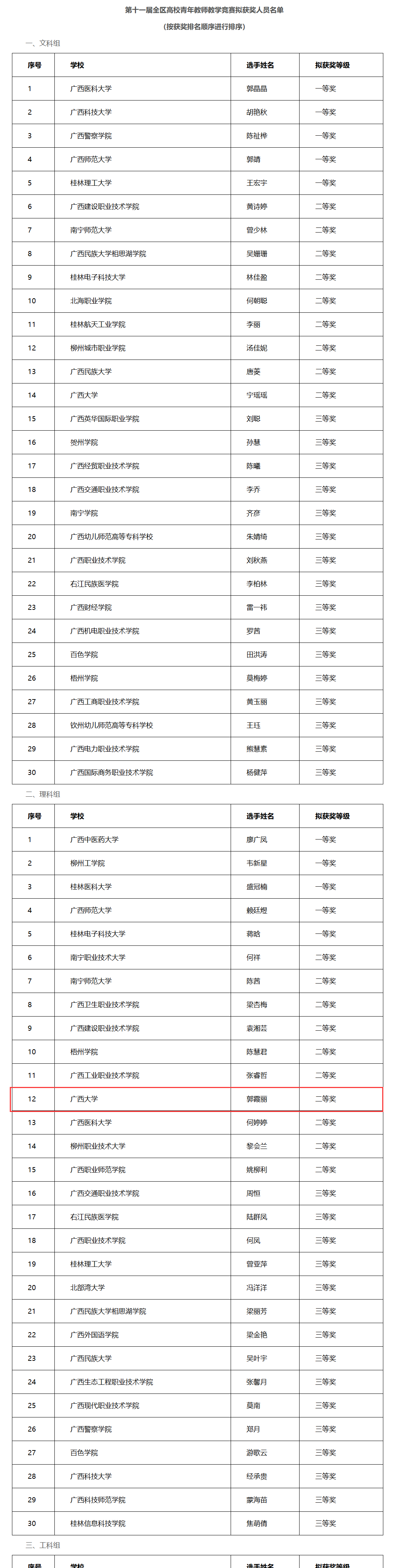近日,由自治区教育厅、自治区总工会主办,广西师范大学承办的第十一届全区高校青年教师教学竞赛决赛圆满落幕。我院郭霞丽老师凭借过硬的教学素养和出色的赛场发挥,在全区58所高校137名参赛选手中脱颖而出,荣获二等奖。