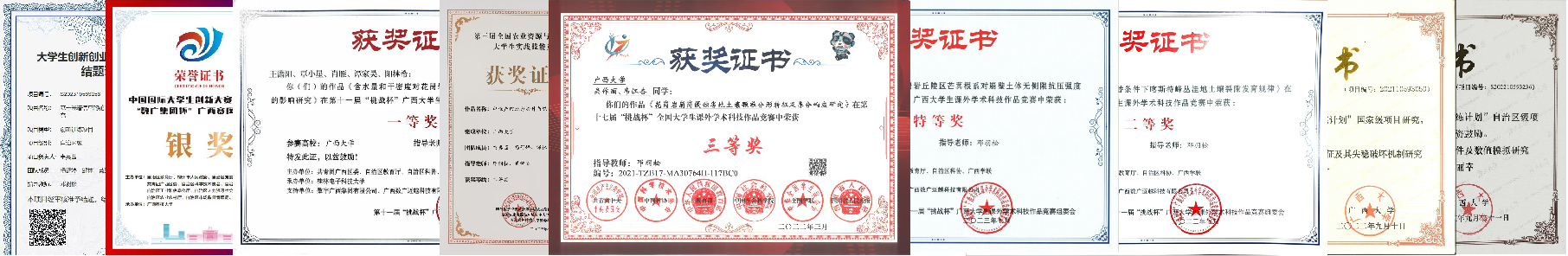 科创竞赛不断突破:指导大学生创新创业训练计划项目累计10项,含国家级3项、自治区级7项,其中3项获评“优秀”结题。学生在竞赛中取得突出成绩:由2018级生态学专业吴作丽、韦江杏完成的作品荣获第十七届“挑战杯”全国大学生课外学术科技作品竞赛三等奖,实现学院在该赛事的历史性突破;2022级生态学专业韦真茜等同学获全国大学生农业资源与环境专业技能竞赛二等奖。广西区级竞赛中,围绕生态修复关键技术共获奖8项,包括“挑战杯”广西区赛特等奖、一等奖、二等奖各1项,以及“互联网+”广西区赛奖项共计5项。