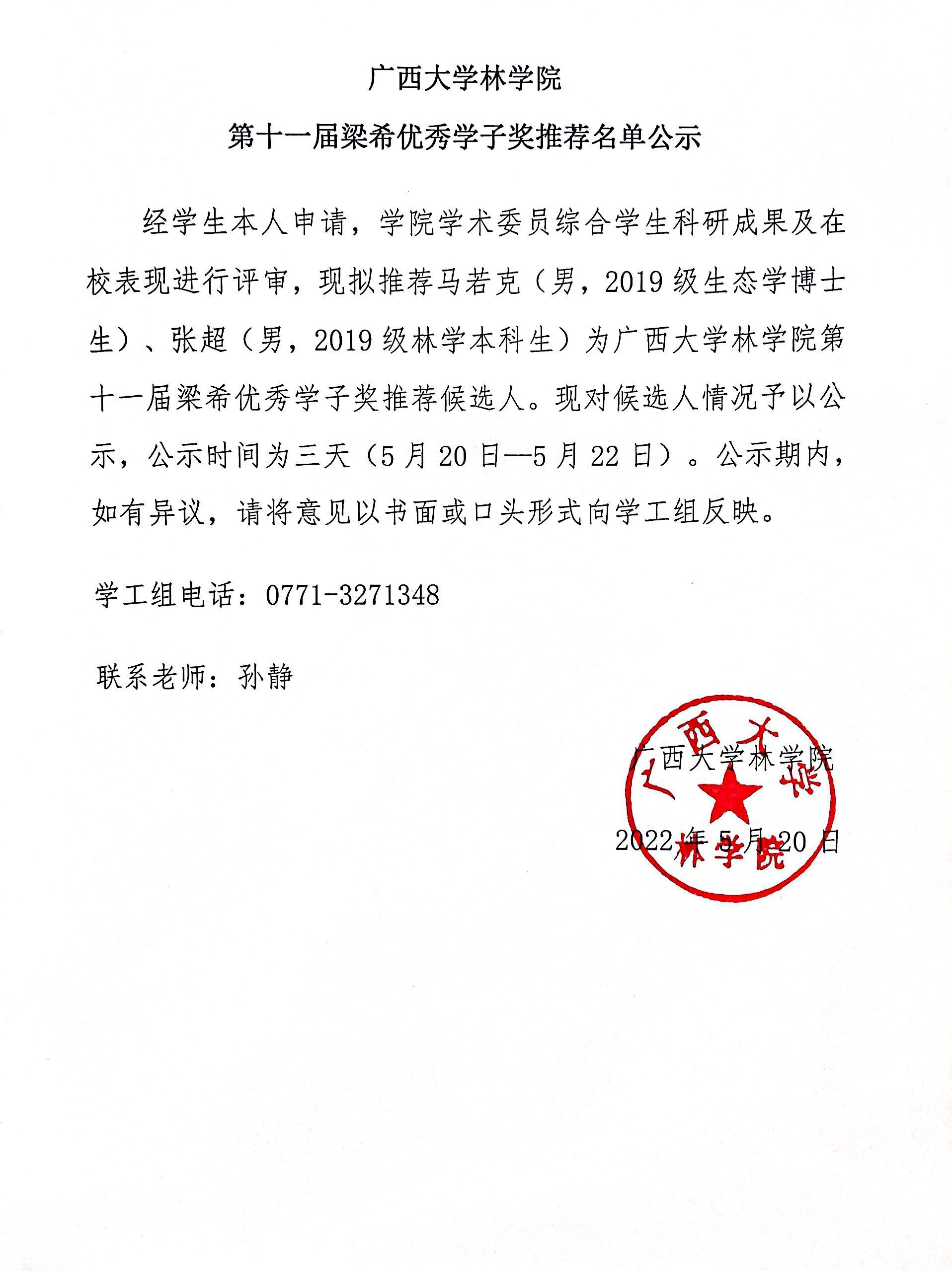 英国365集团第十一届梁希优秀学子奖推荐名单公示