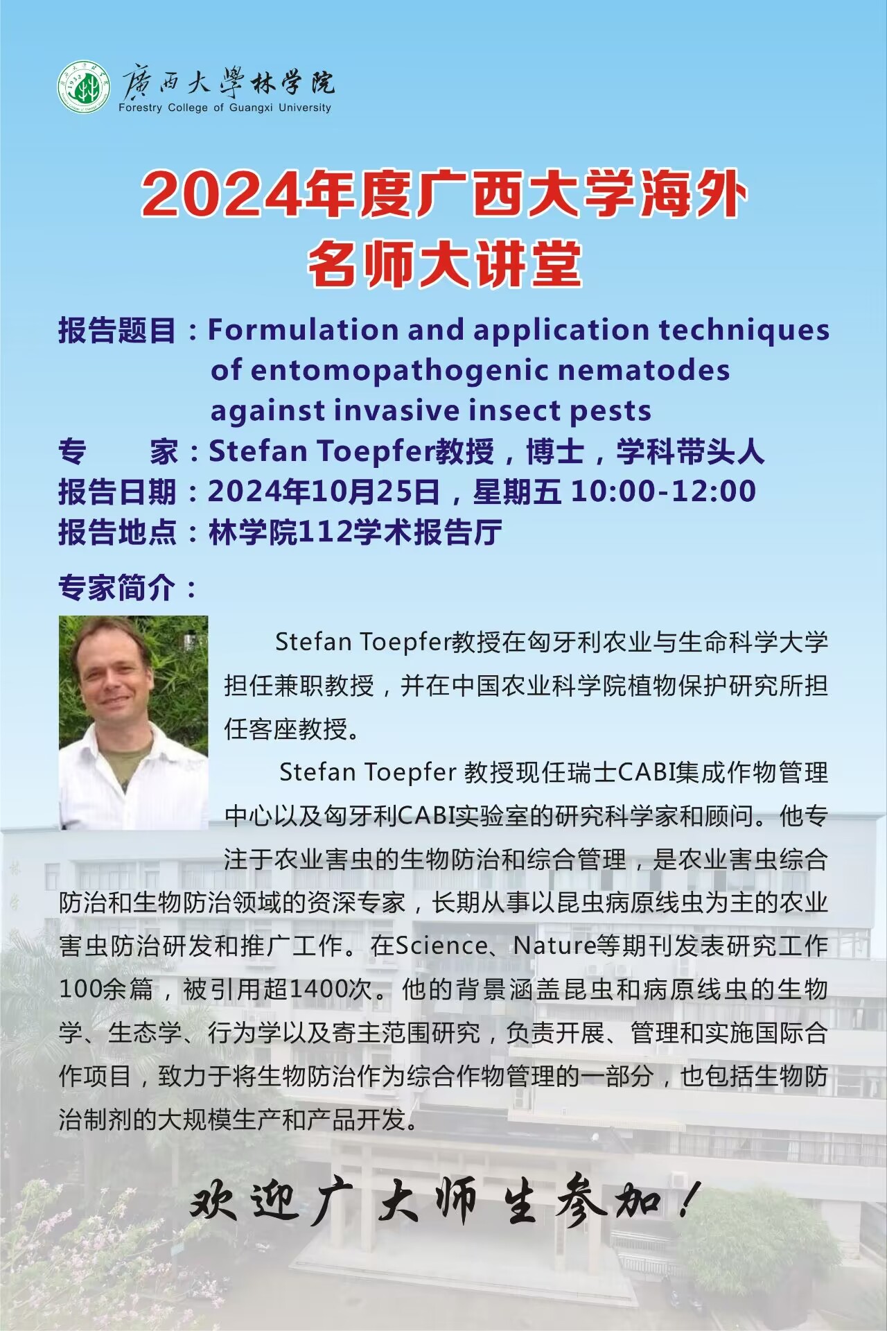 学术报告(2024年度英国上市公司365海外名师大讲堂):Formulation and application techniques of entomopathogenic nematodes against invasive insect pests