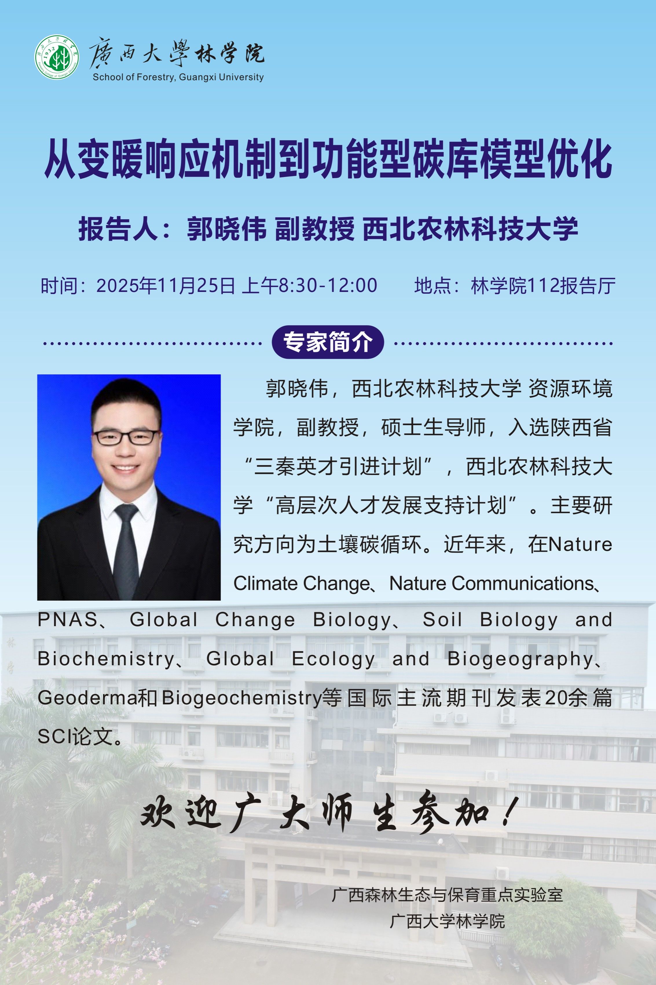 学术报告:从变暖响应机制到功能型碳库模型优化