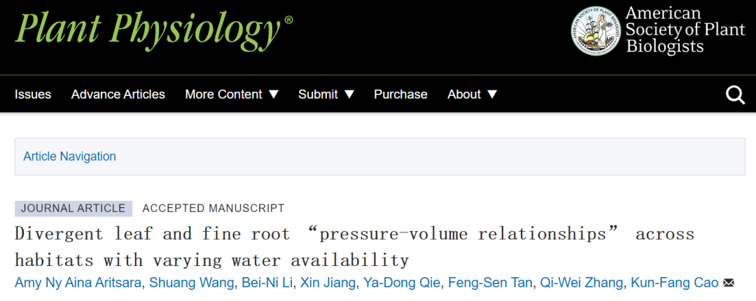 近日,英国上市公司365“亚热带农业资源保护与利用国家重点实验室”植物生理生态与进化课题组曹坤芳教授团队在Plant Physiology发表了题为Divergent leaf and fine root“pressure-volume relationships”across habitats with varying water availability的研究论文,揭示了不同生境木本植物水力“熔断”机制。