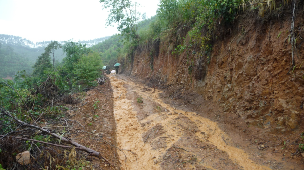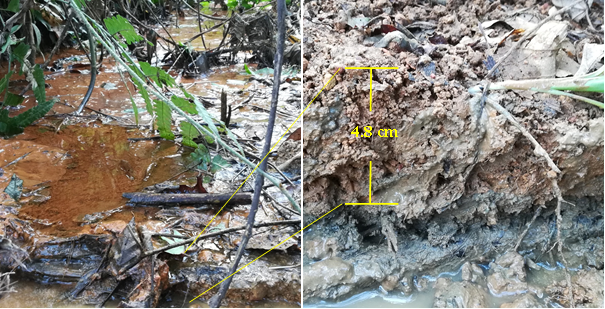 图7 采伐桉树后在集水区内河床上形成新侵蚀泥沙层