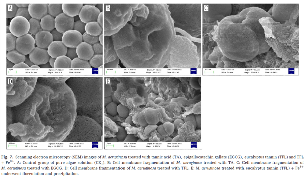 图5 暴露于不同类型单宁以及桉树单宁铁离子水溶液后铜绿微囊藻细胞形状变化(Xie et al, 2023)