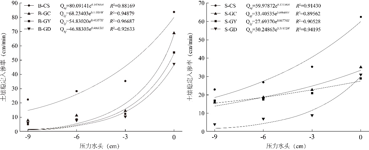 图1 土壤稳定入渗率随压力水头的变化